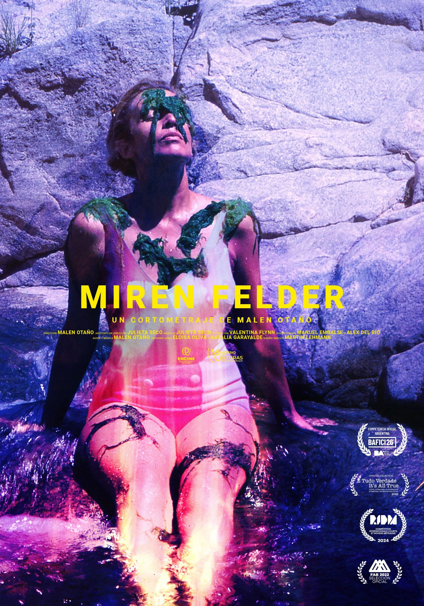 Un suspenso helado, una fiesta azul, muros invisibles, sorbos de agua salada, un espejo tembloroso, un choque en la nieve, serpientes liberadas y un piano fantasma. MIREN FELDER es una película hecha con fotografías monocromáticas tomadas por mi abuelo militar, las imágenes son mensajes de emergencia que envía mi abuela después de su muerte en un accidente aéreo en 1977. Me ofrezco como médium para invocar al espíritu de mi abuela y comunicarme con ella. MIREN FELDER toma la forma de ritual anudando diferentes capas de tiempo y abre un portal para interrogar la complicidad de mi familia con la dictadura.